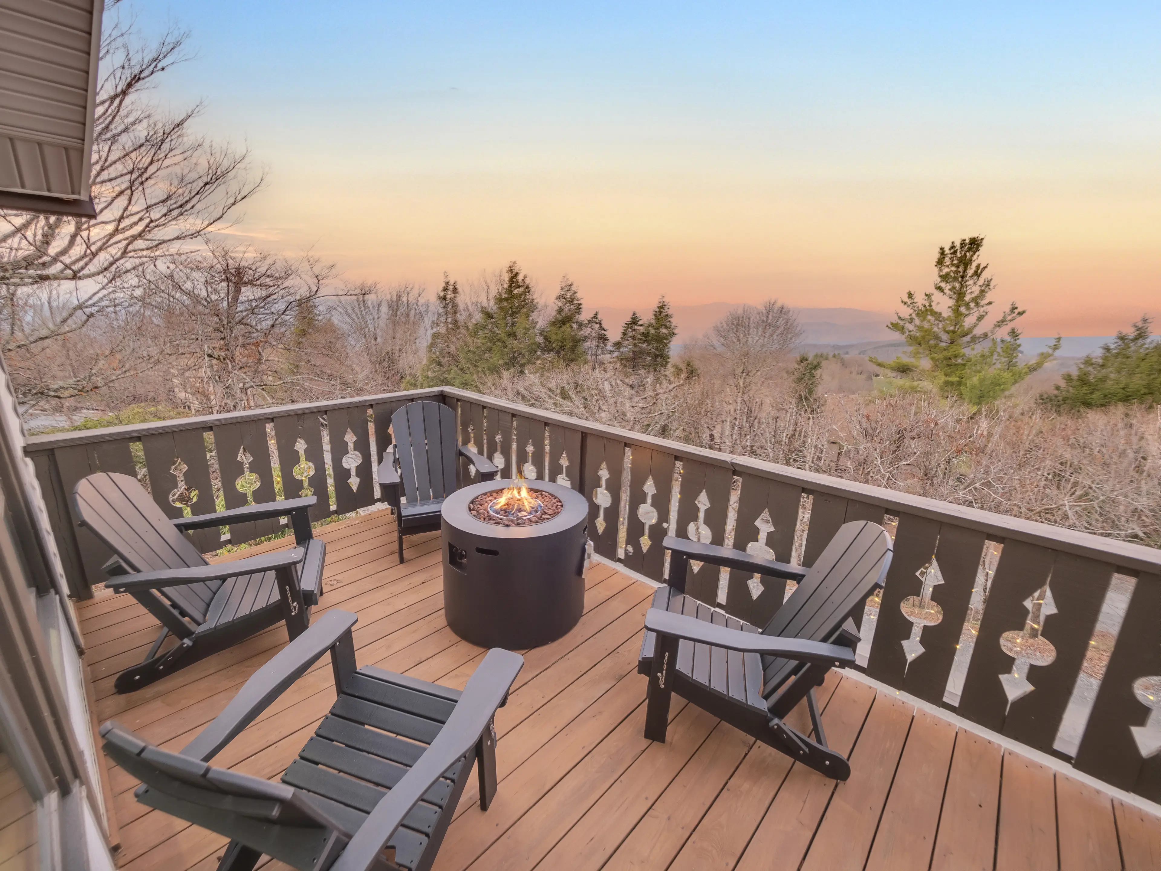 -Another spacious deck with a gas fire table and gas grill to enhance your outdoor experience. On clear days, you can see four different states from this panoramic mountain view!
